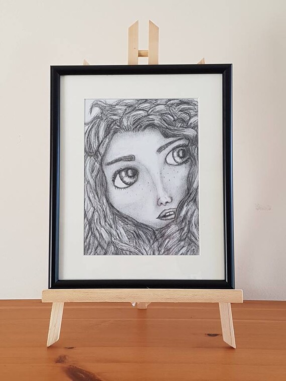 Incorniciato Matita Grafite E Disegno A Carboncino Di Merida Ispirato Da Brave Di Disney - Download