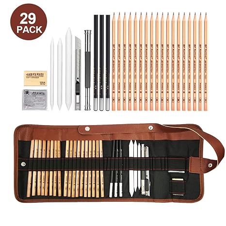 Matite Disegno Kit Per Schizzo Easehome 29 Pezzi Set Da Disegno Matite Grafite Carboncino Penne Gomme Temperamatite Strumento Artistico Con Custodia - Download