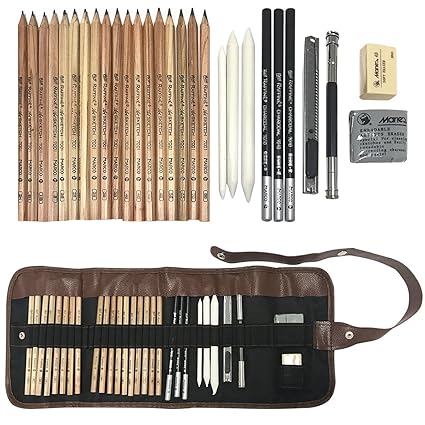 Tinpa 33 Pezzi Professionale Schizzo E Disegno A Matita Schizzo Del Corredo Dell Insieme Di Grafite E Carboncino Matite Gomma Temperamatite - Download