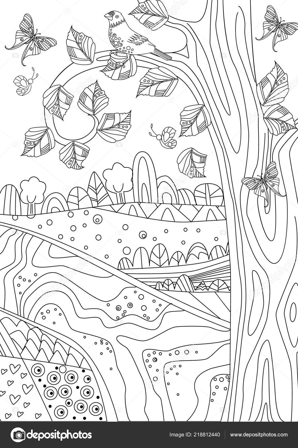 Paesaggio Della Natura Estate Felice Tuo Libro Colorare - Download