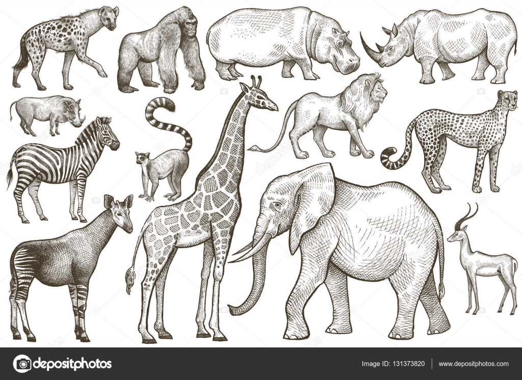 Disegnato A Mano Stile Di Disegno Astratto Animali Africani - Download