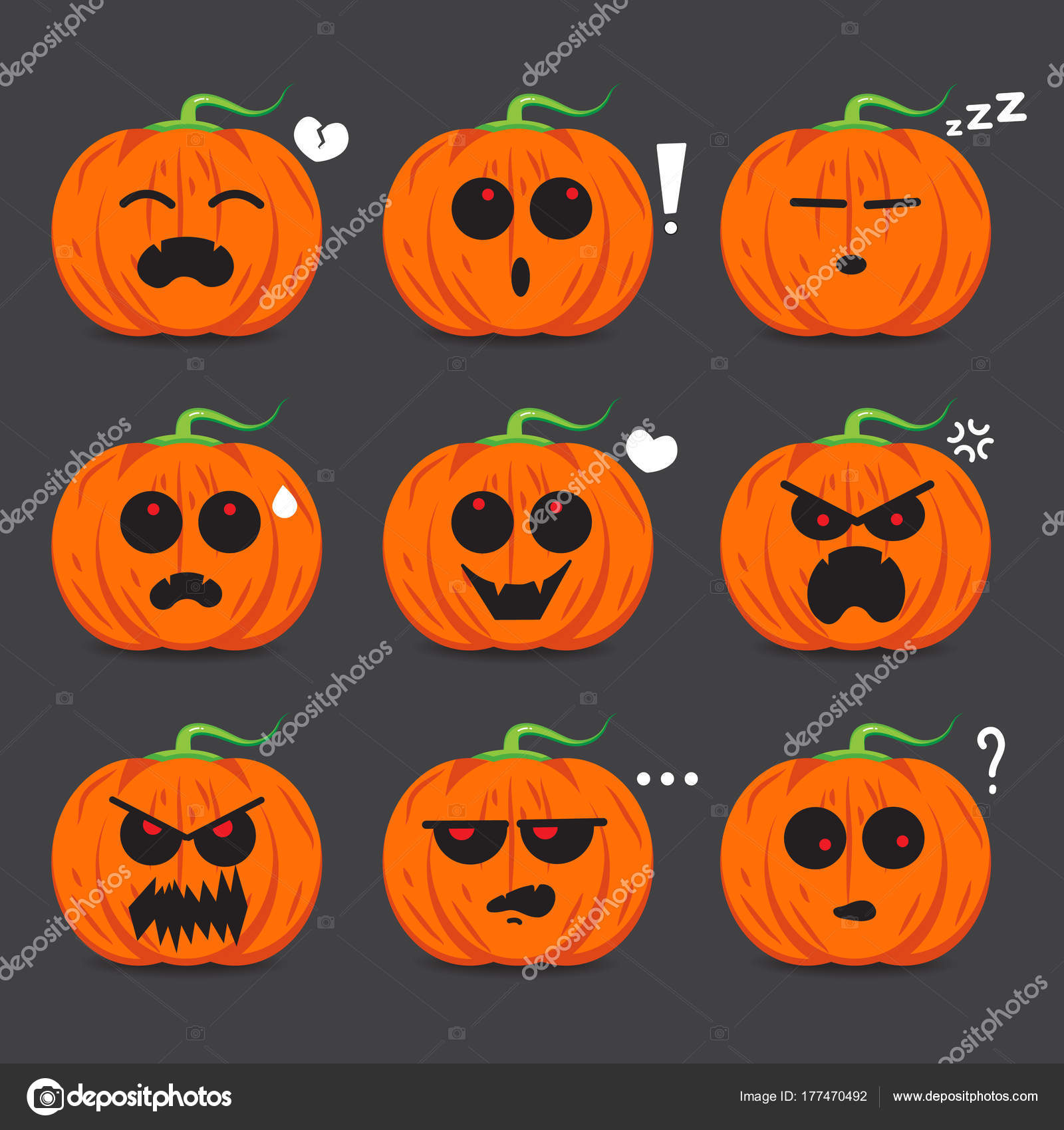 Vettore Disegno Facce Halloween Faccia Zucca Emozione - Download