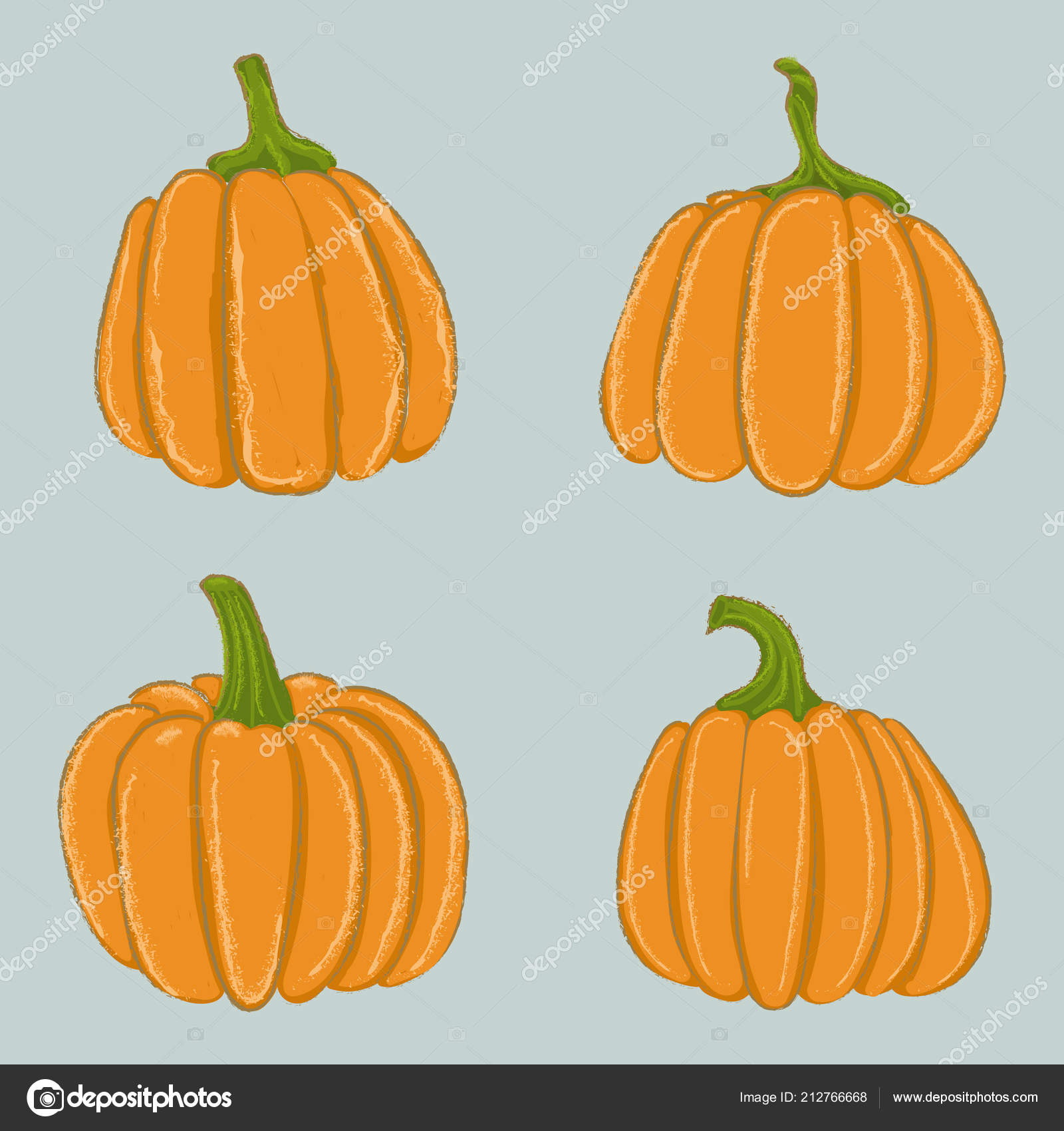 Set Quattro Zucche Disegnati Mano Elementi Disegno Vendemmia - Download