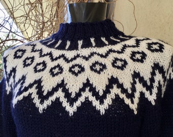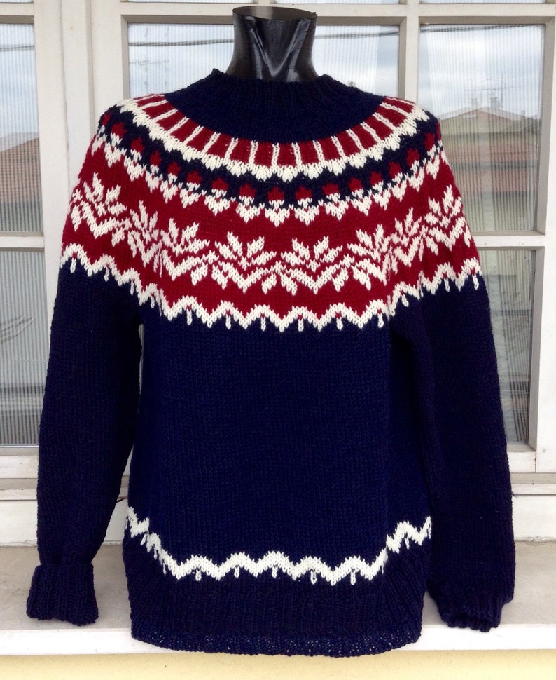 Maglione Jacquard Per Lei In Alpaca O Lana Merino Modello Senza Cuciture Ferri Circolari Sprone Tondo Con Disegno Colori A Sce - Download