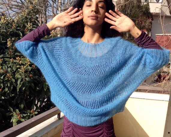Thin Knit With Irons In Blue Kid Mohair Top Down Work With Circular Spur Seamless Colors Of Your Choice - Download