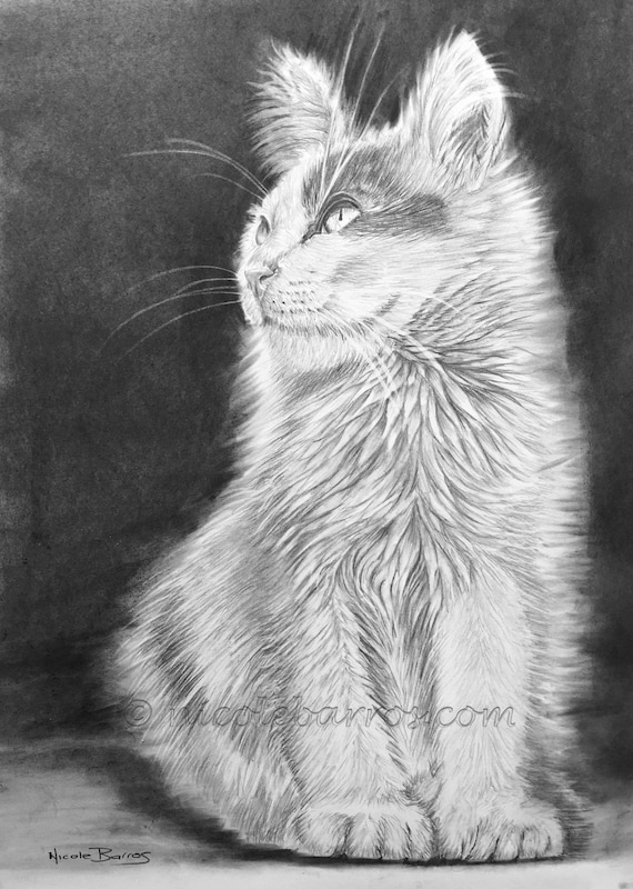Disegno Di Gatto Sotto Luci Disegno A Matita Originale Animale Arte Oggettistica Per La Casa Gatto Arte Ritratto - Download