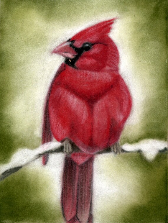 Inverno Cardinale Un Pastello Di Disegno Dal Fauna Selvatica Raccolta Stampa Fine Art Artista Wendy Leedy Firmato - Download