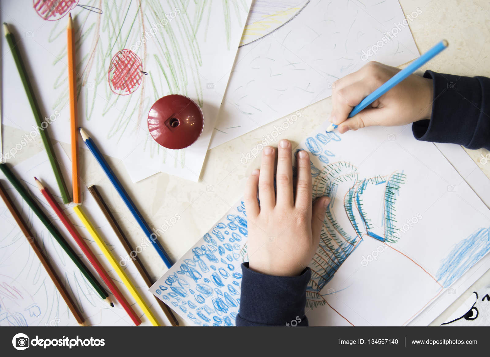 Il Bambino Disegna Disegni A Matita Di Inverno E Natale - Download