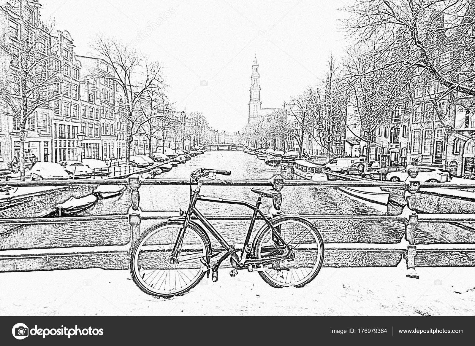 Illustrazione Matita Paesi Bassi Inverno Amsterdam - Download