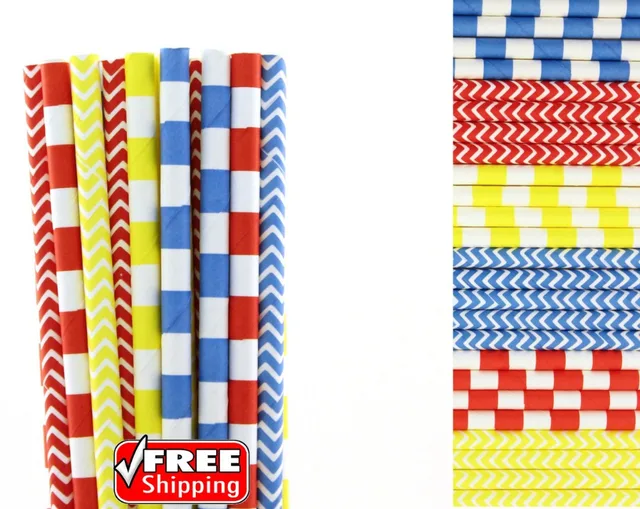 Us 13 0 150 Pz Misti 6 Disegni Rosso Blu E Giallo A Tema Paglie Di Carta A Righe Da Marinaio Zig Zag Chevron Treno Superhero Festa Di Compleanno - Download