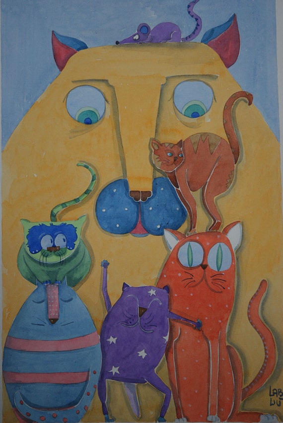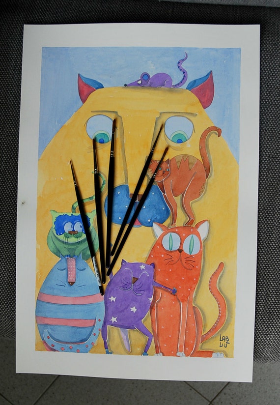 Illustrazione Gatti Illustrazione Acquerello Disegno Gatti Poster Cameretta Regalo Amante Gatti Regalo Casa Nuova Gatti Colorati - Download