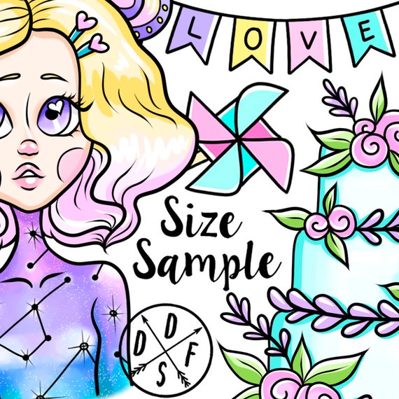 A0189 Star Girl Galaxy Unicorn Leah Party Cake Newborn Garland Pizza Digital Clip Art Clipart Instant Download 21 Png Files - Download