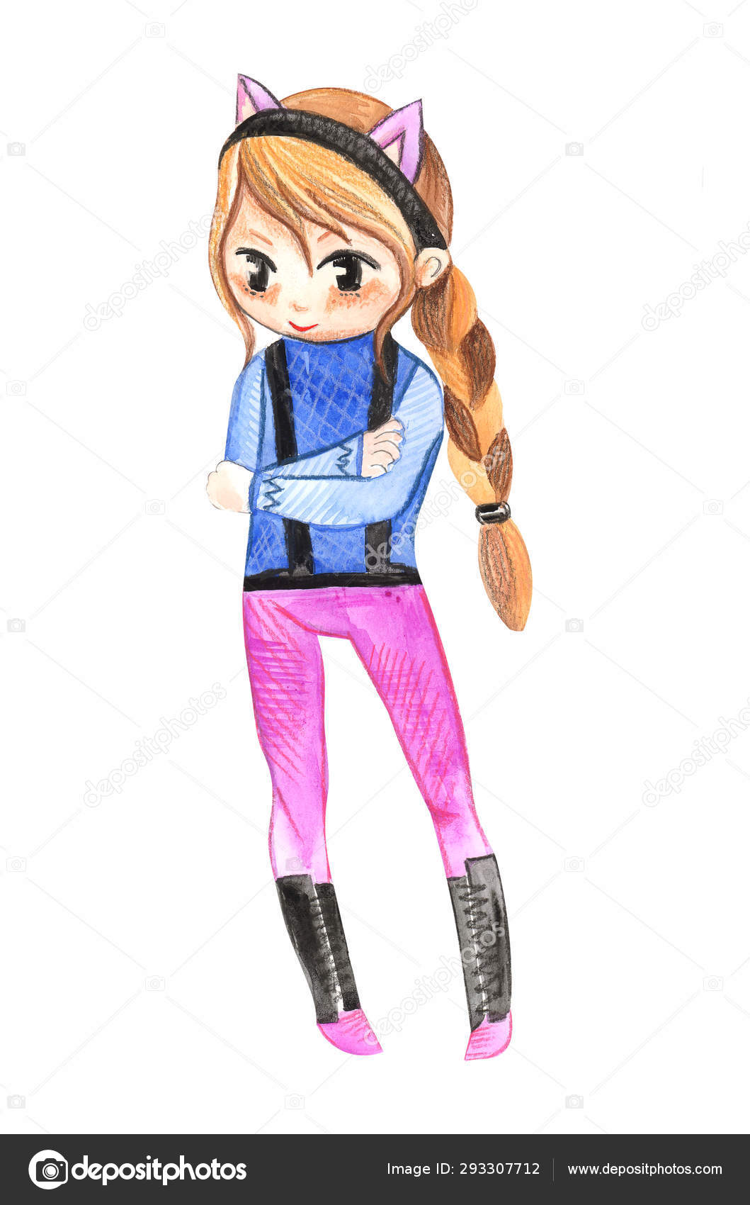 Illustrazione Disegno Colori Acquerello Manga Ragazza Abiti - Download