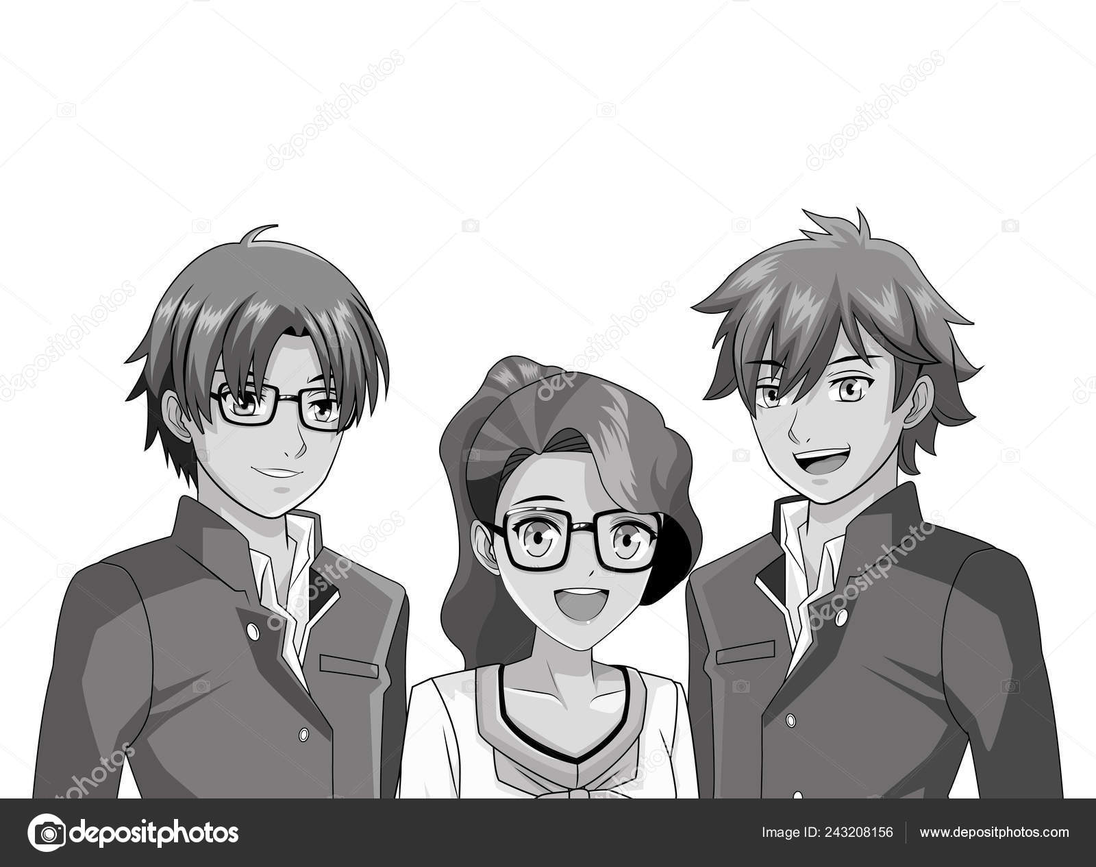 Gli Amici Di Anime Manga Cartoon Vettoriali Stock - Download