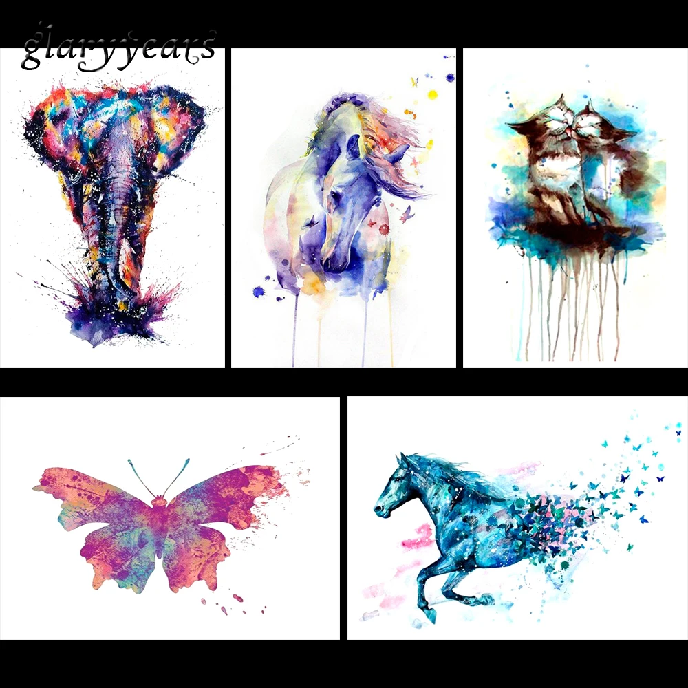 Us 4 29 5 Pezzi Di Animale Colorato Disegno Del Modello Di Fiore Autoadesivo Del Tatuaggio Del Corpo Del Braccio Art Acquerello Elefante Gatto - Download