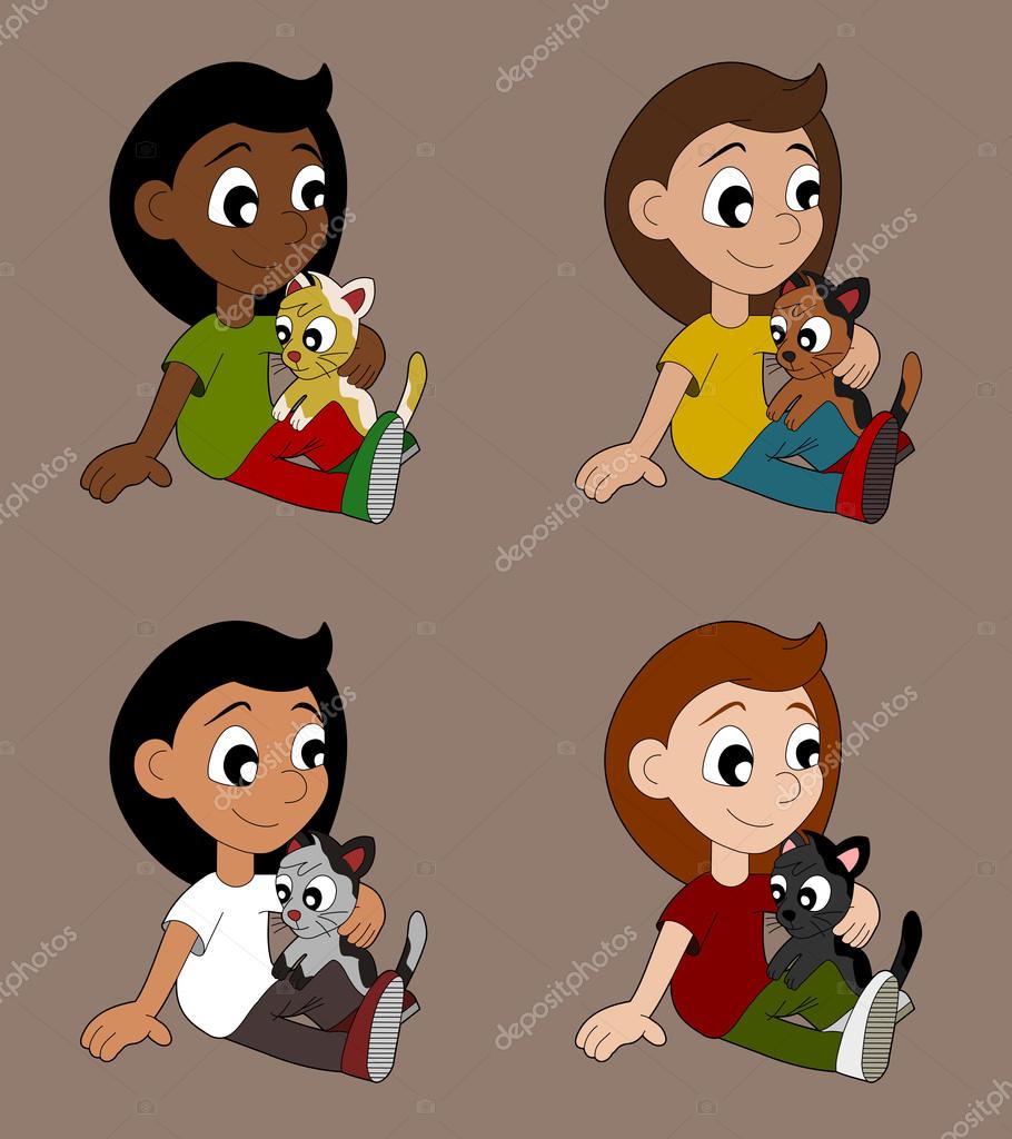 Diverse Ragazze Con Il Fumetto Dei Gatti Vettoriali Stock - Download