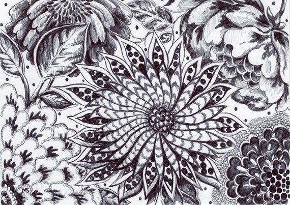 Bianco E Nero Fiori Penna E Inchiostro Disegno Originale Black Magic Garden 5x7 Floral Wall Art - Download
