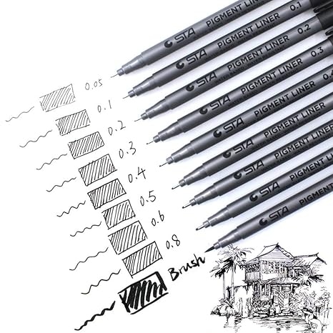 Laconile Confezione Da 9 Penne A Punta Sottile Nere Pigment Liner Penne Da Disegno Per Tratteggio Sottile Penne Pigma Micron Per Punti E Linee - Download