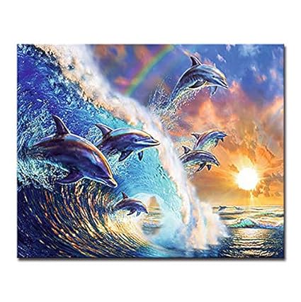 Wacydsd Diy Delfino Tramonto Pittura By Numbers Disegno Mare - Download