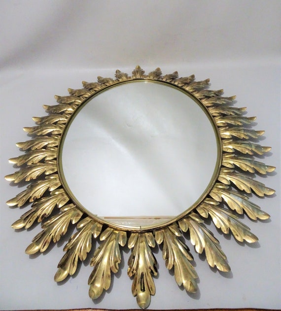 Specchio Ovale Italiano Di Sunburst Con Foglie Di Acanto 1960s Italia Big 71 X 56 5 Cm 28 X 22 25 Pollici Regalo Uomo Donna Ufficio Sala - Download