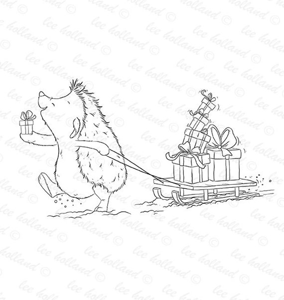 Francobolli Digitali Istrice Che Tira Slitta Carta Facendo Libro Da Colorare - Download