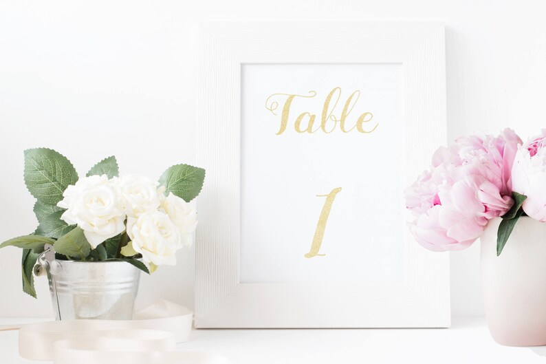 Gold And White Table Numbers Instant Download Gold Glittering Printable Table Numbers Card - Download