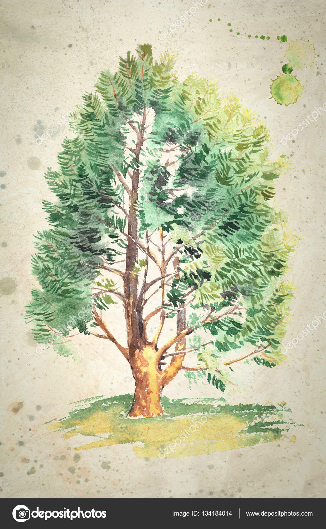 Pittura Ad Acquerello Di Un Albero Di Cedro Realistico Su - Download