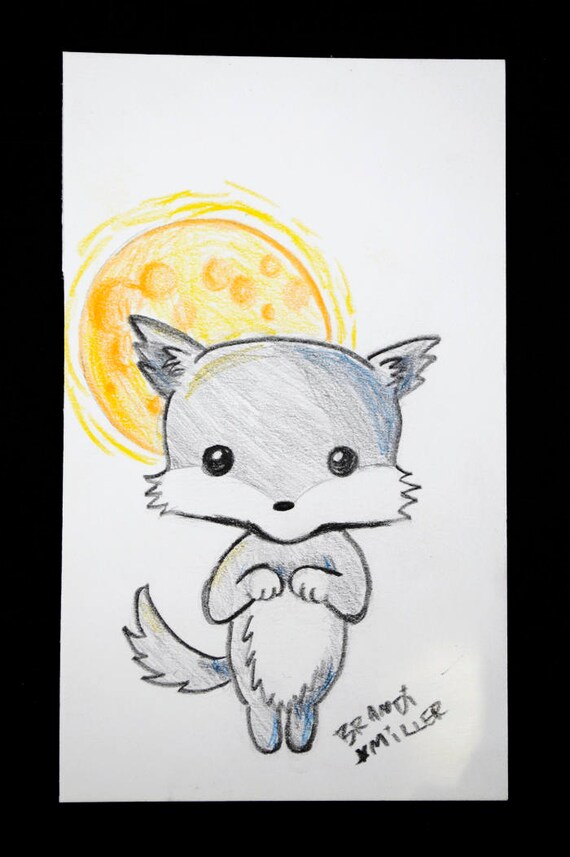 Disegno Di Kawaii Lupo Mannaro Lupo Sveglio Con Luna Piena Halloween Color Matita Disegno Piccoli 4x6 Wall Art Opere D Arte Originali In Miniatura - Download