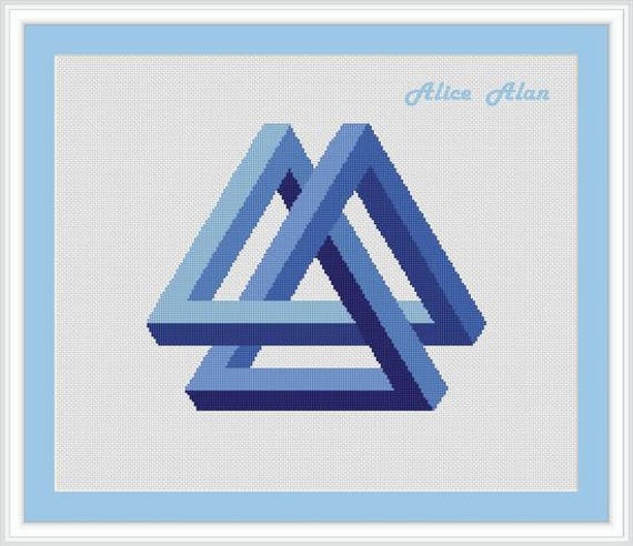 Abstract Geometric Figure Triangles 3d Effect Monochrome Blue Red Gray Minimalism Counted Cross Stitch Pattern Instant Download Epattern - Download