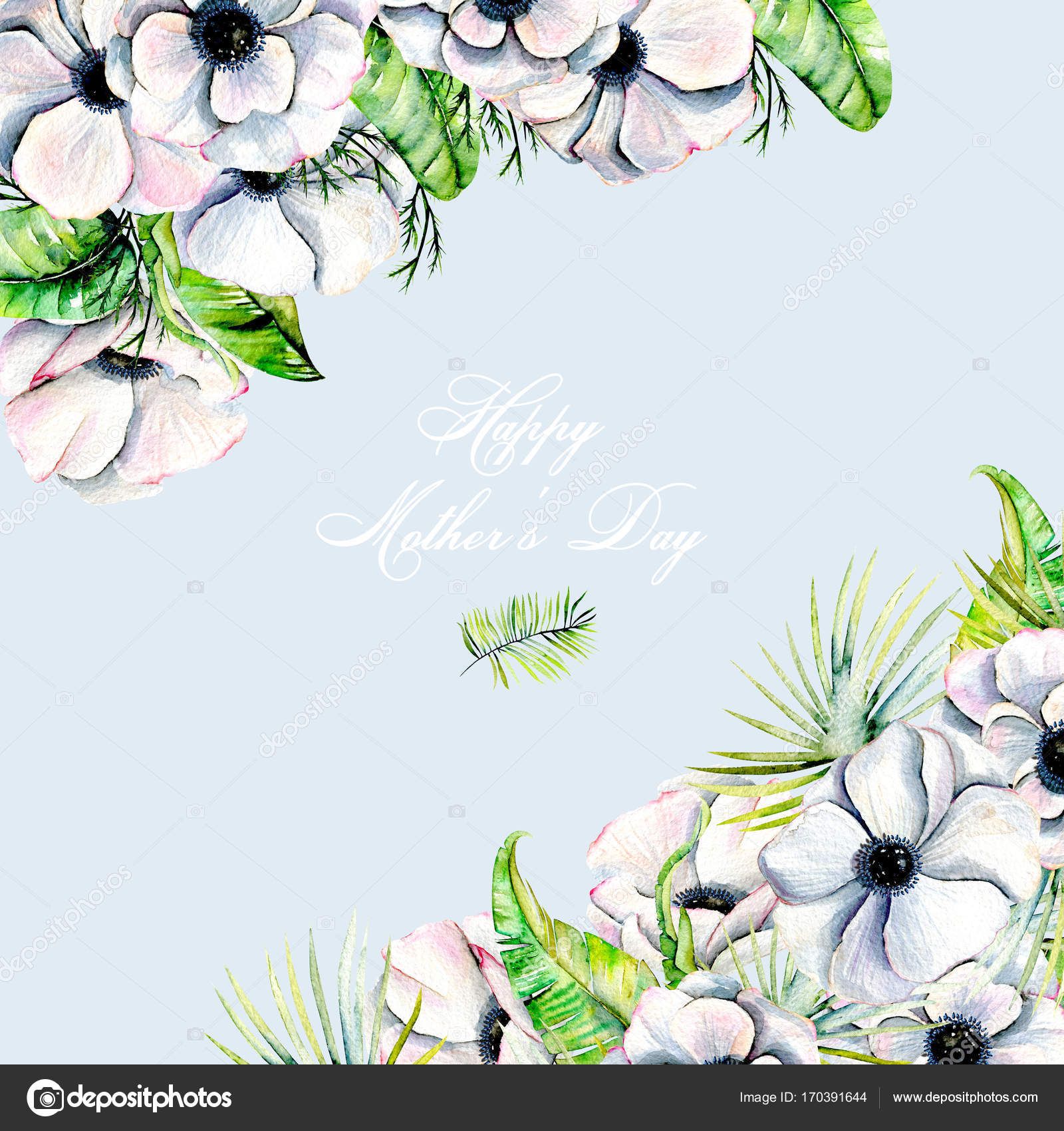 Scheda Modello Con Anemoni Bianchi Dell Acquerello Disegno - Download