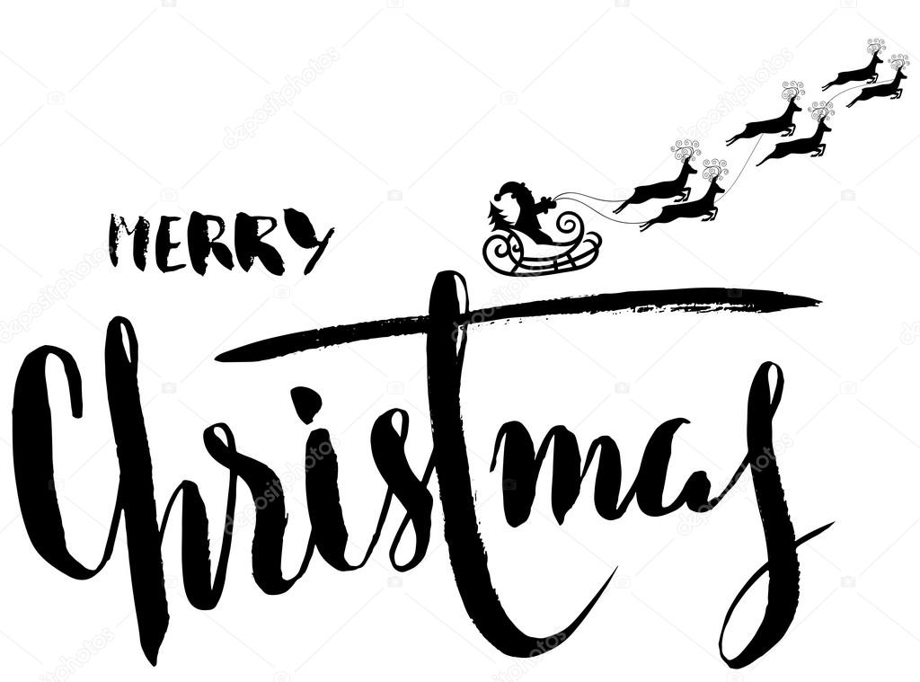 Siluetta Della Slitta Di Babbo Natale E Renne Lettering - Download