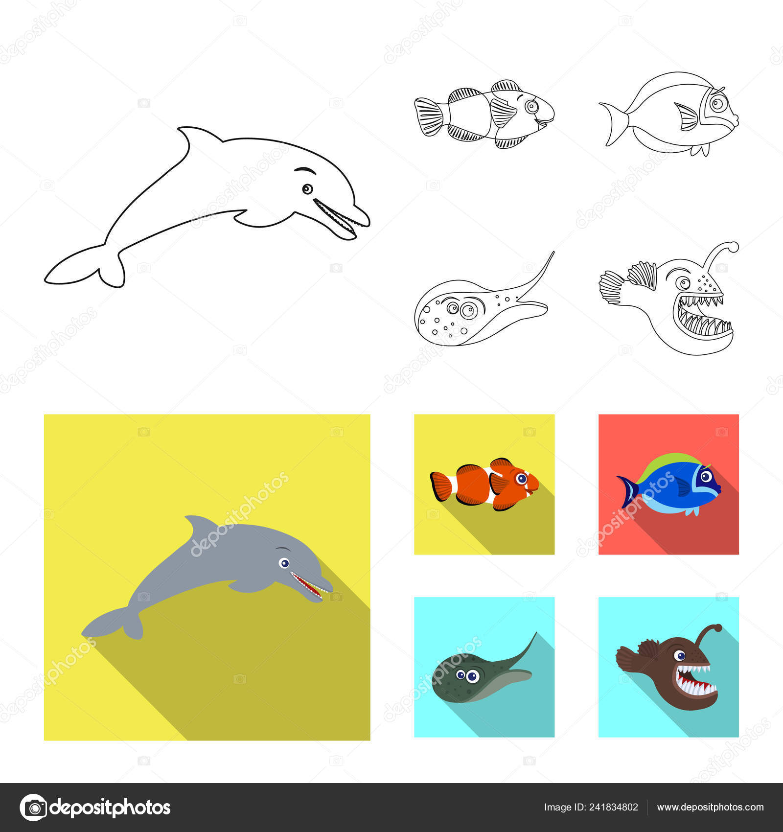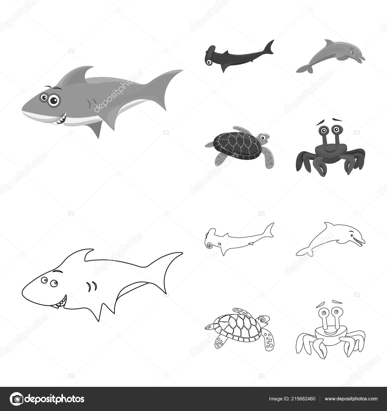 Disegno Di Vettore Dell Icona Mare E Animale Insieme Di - Download