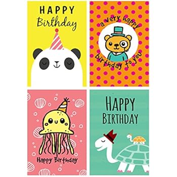 12 Biglietti Di Compleanno Con Buste Divertenti Stile Cartone Animato Disegni Di Animali Panda Tartaruga Polpo Orso Prodotti Nel Regno Unito - Download
