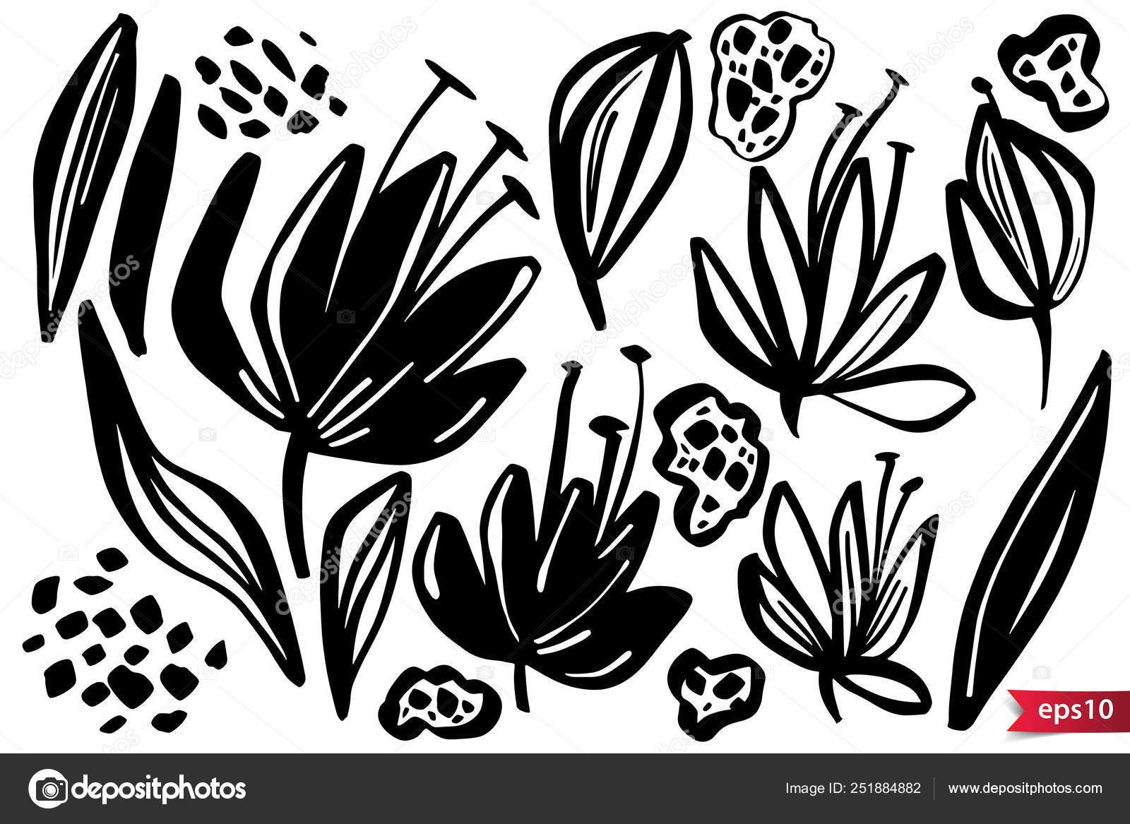 Insieme Di Inchiostro Disegno Erbe Fiori Bianco E Nero - Download
