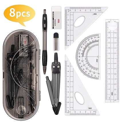 8 Pz Set Con Compasso Kit Scuola Elementare Geometria Con Bussola Disegno Bussola Goniometro Righelli Ricariche Piombo Matita Matita Gomma Compasso - Download