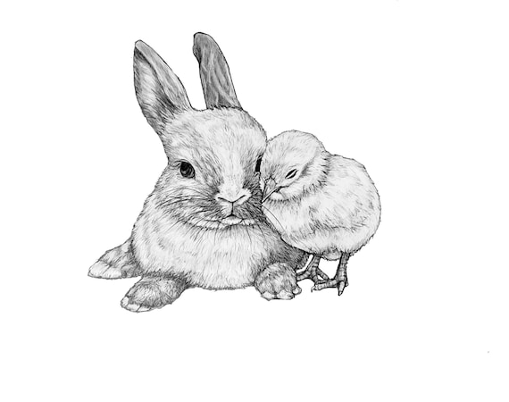 Disegno A Matita Di Coniglio E Pulcino - Download