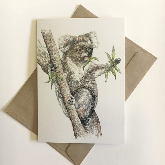 Cartolina D Auguri Di Koala Arte Di Fauna Selvatica Australiana Aussie Animale Preferito Mammifero Nativo Fogli Della Gomma Che Si Siede - Download