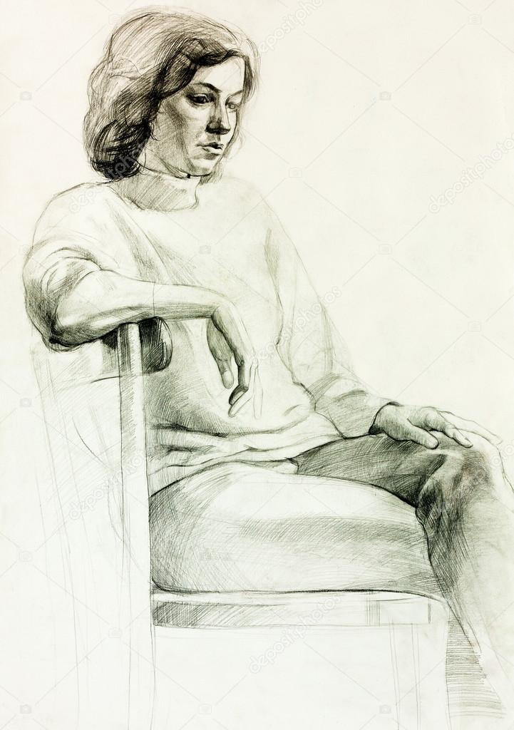 Disegni Donne Sedute Disegno Di Una Donna Foto Stock - Download