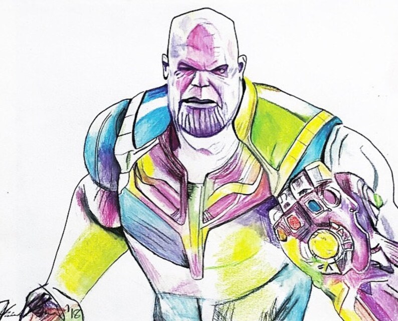 Arte Di Vendicatori Thanos Colore Matita Opera D Arte 8 5x11 Stampa Supereroe Marvel Comics Poster Illustrazione Disegno Wall Decor Colorato - Download