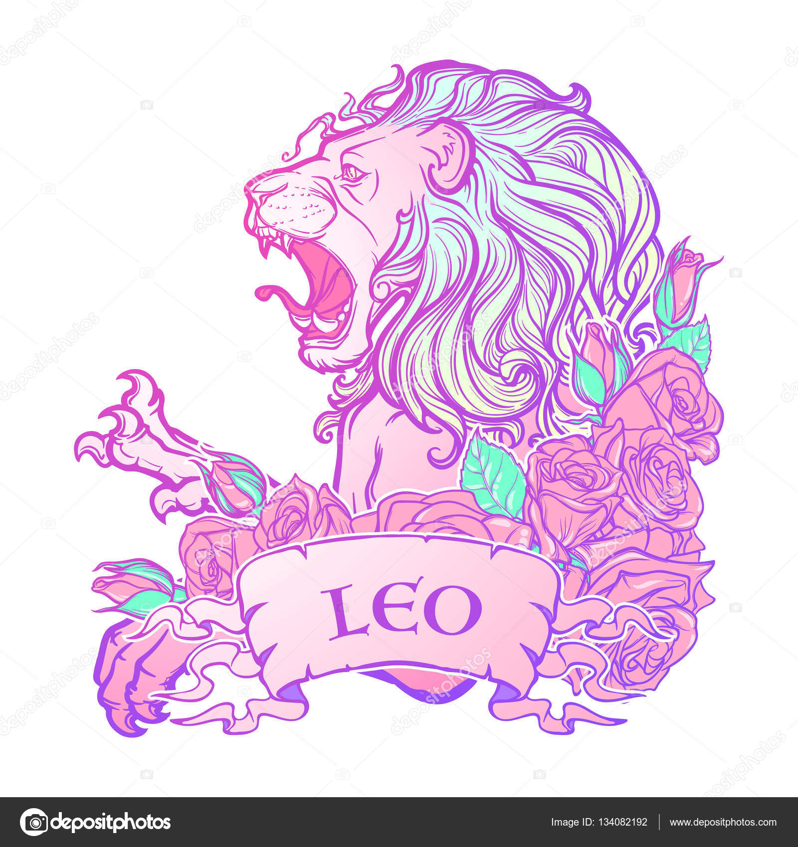 Segno Zodiacale Del Leone Con Rose Cornice Decorativa - Download