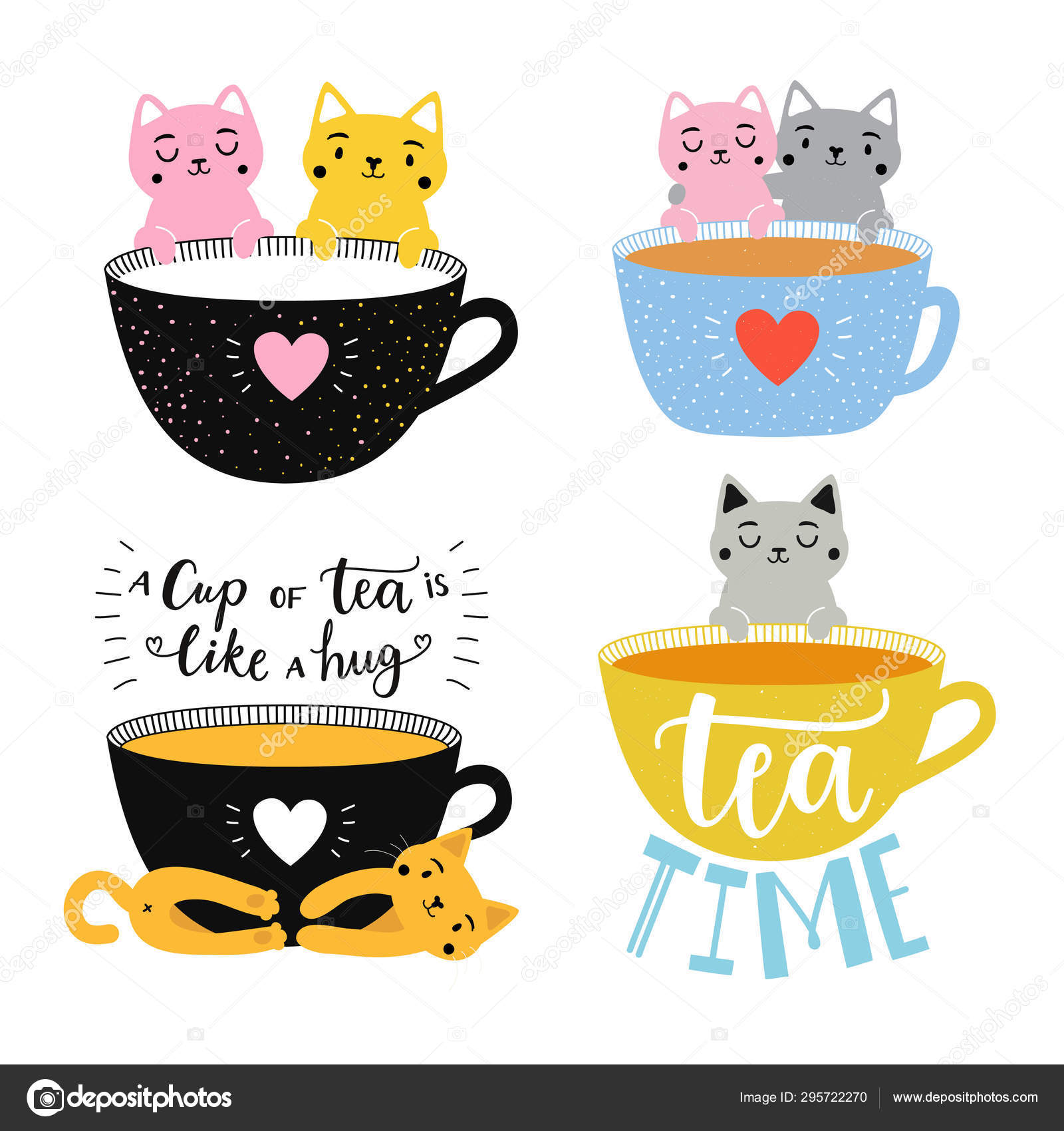 Collezione Vettoriale Con Gatti E Tazze Da Te Una Tazza Di - Download