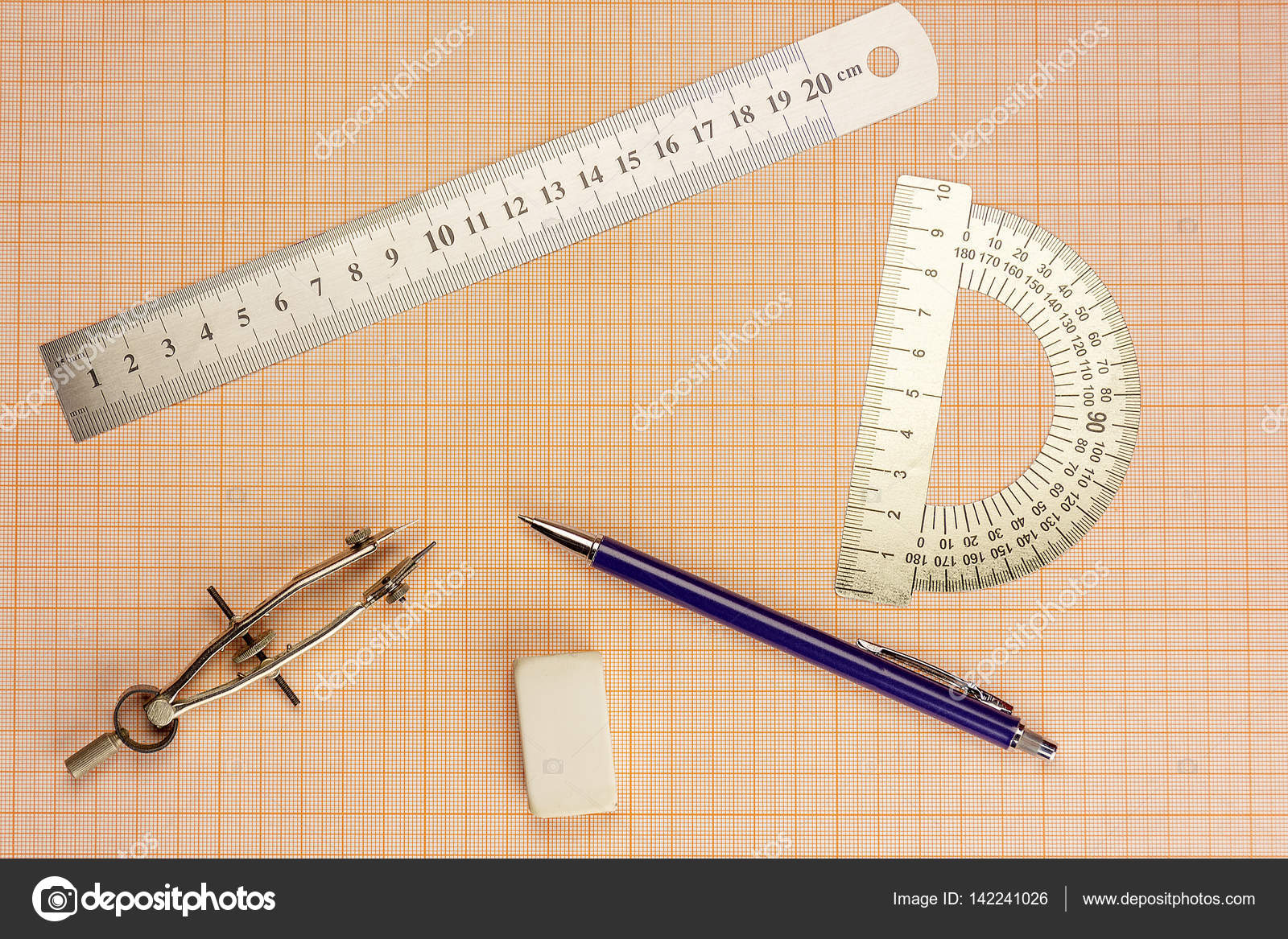 Compasso Matita Righello Disegno Carta Millimetrata Foto - Download
