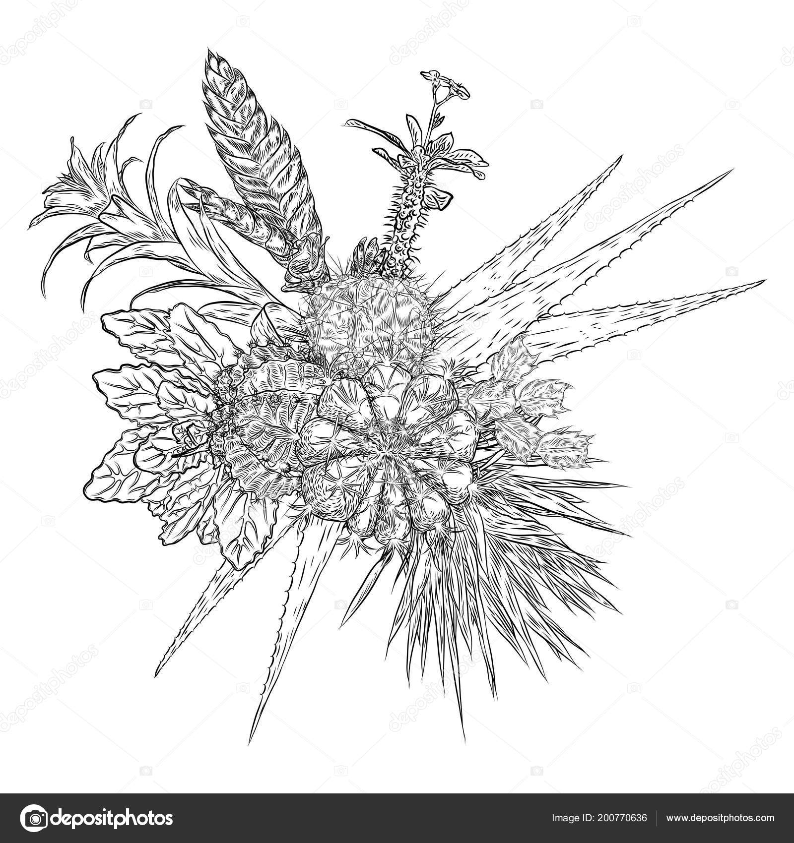 Composizione Piante Grasse Cactus Piante Verdi Disegno - Download