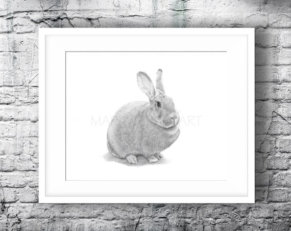 Stampa Artistica Di Coniglio Mano Animale Tratto Di Matita Disegno A4 A5 Artistica Artista Uk Fauna Britannico Parete Arte Foto Vivaio - Download