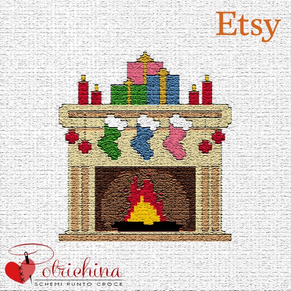 Pdf Schema Punto Croce Caminetto Di Natale Cross Stitch Pattern - Download
