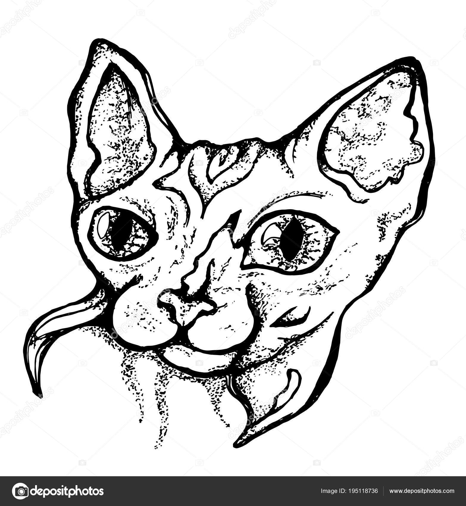 Carta Da Parati Razza Gatto Sphynx Faccia Schizzo Vettoriale Disegno In Bianco - Download
