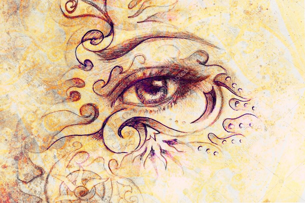 Occhio Della Donna Con Ornamento Disegno A Matita Contatto - Download