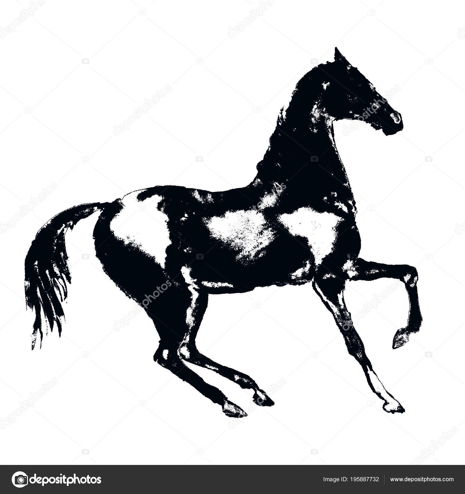 Sagoma Cavallo Nero Con Disegno Artistico Grunge Della Mano - Download