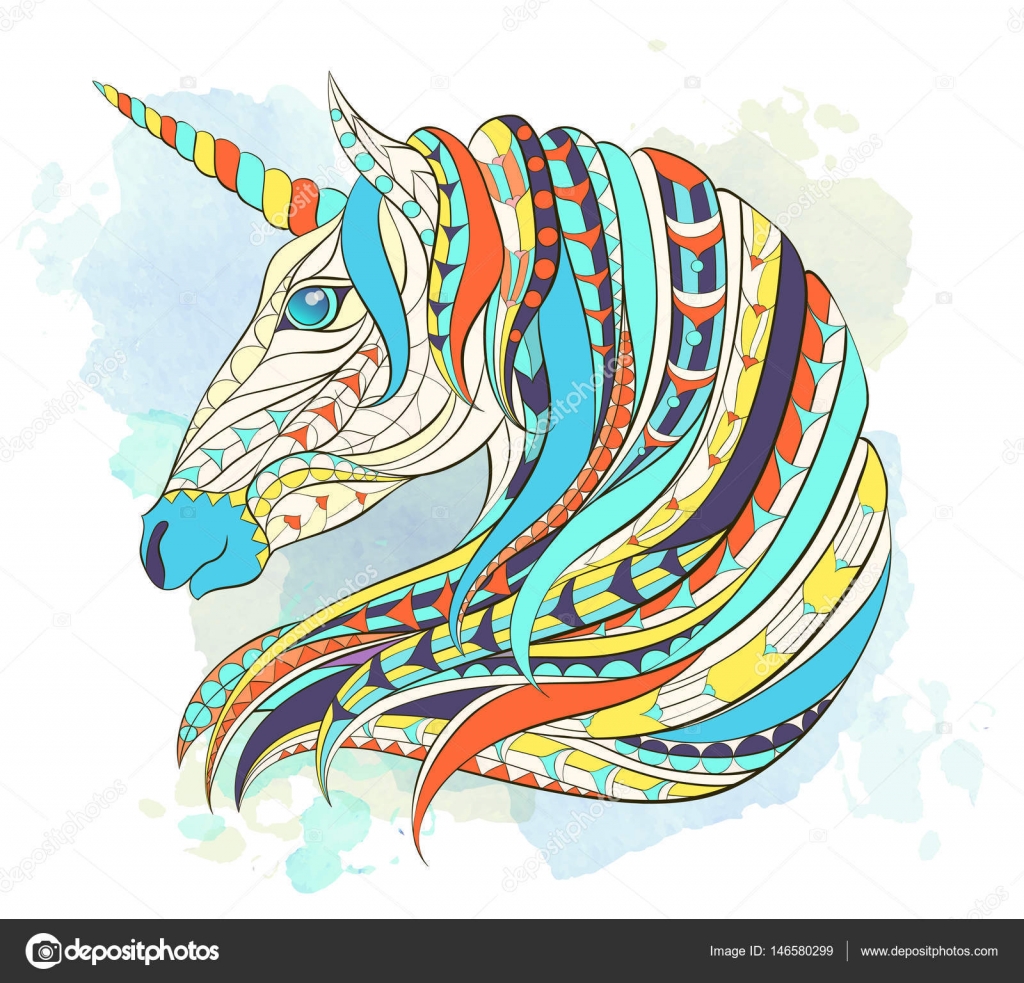 Tappeto A Motivi Testa Di Unicorno Colorato Vettoriali - Download