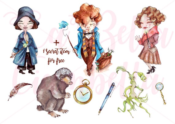Animali Fantastici E Dove Trovarli Clip Art Ad Acquerello Dipinta A Mano 9 Files Png Piu Uno Segreto In Regalo 300 Dpi Alta Risoluzione - Download